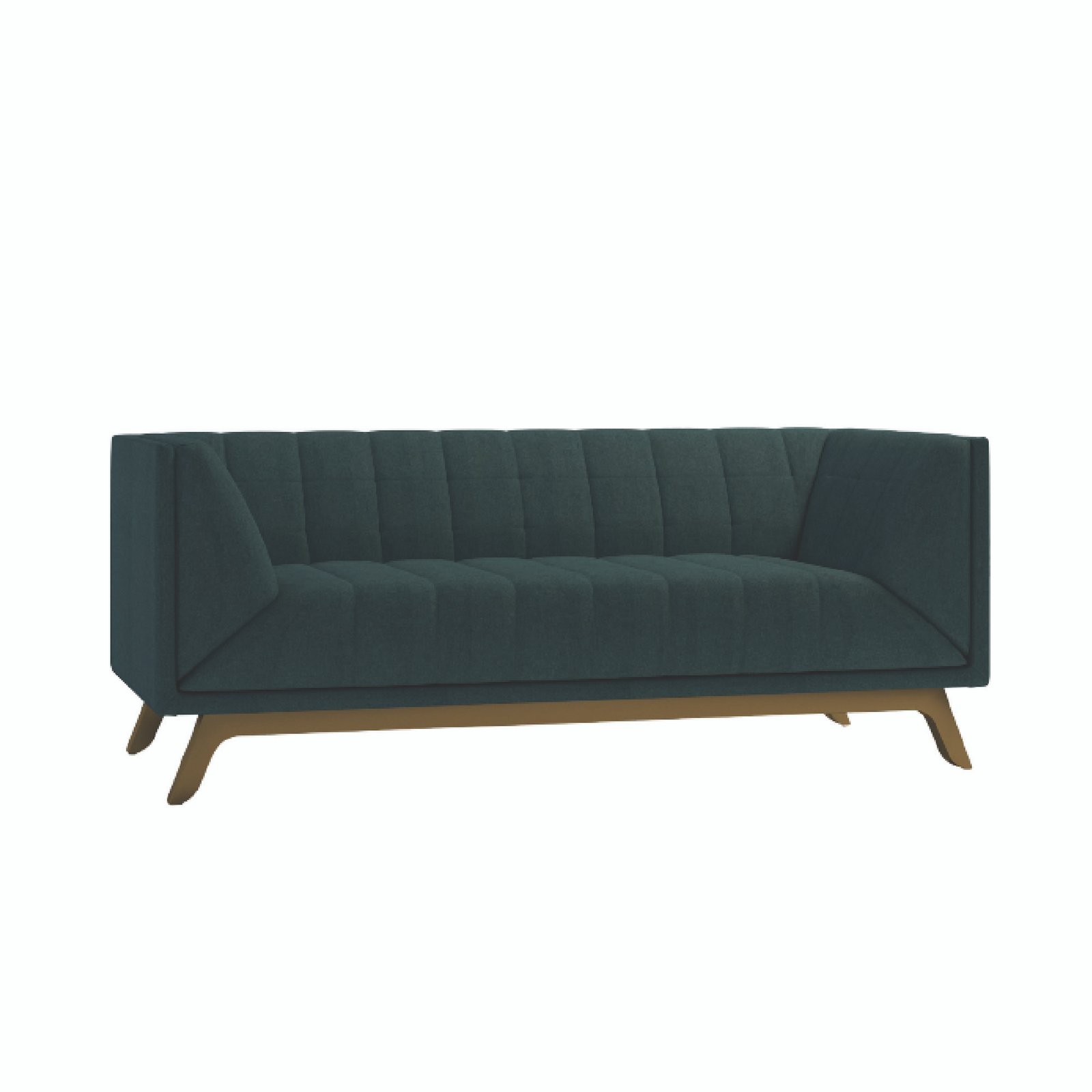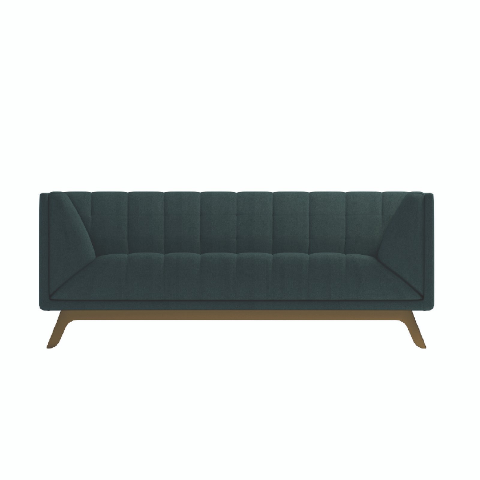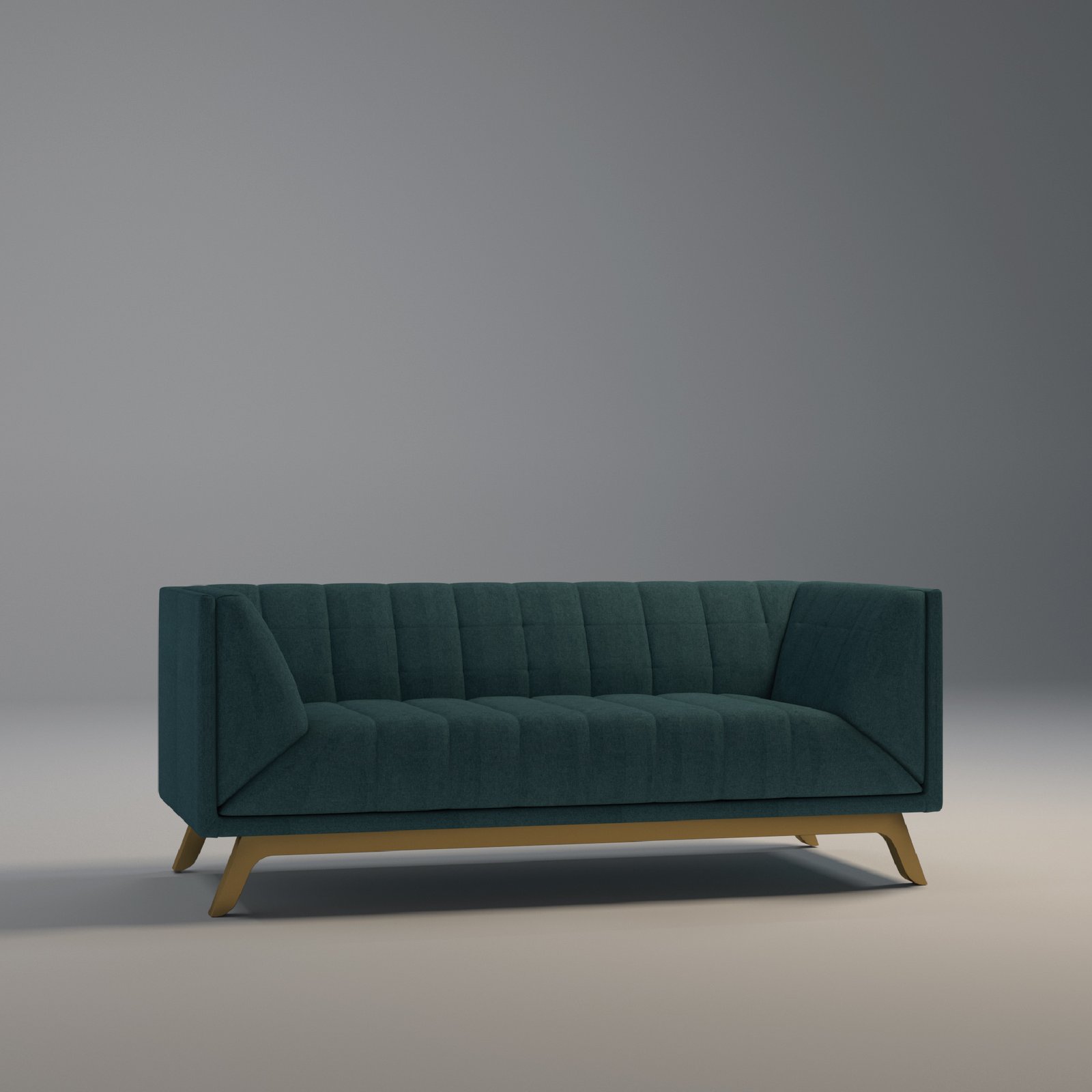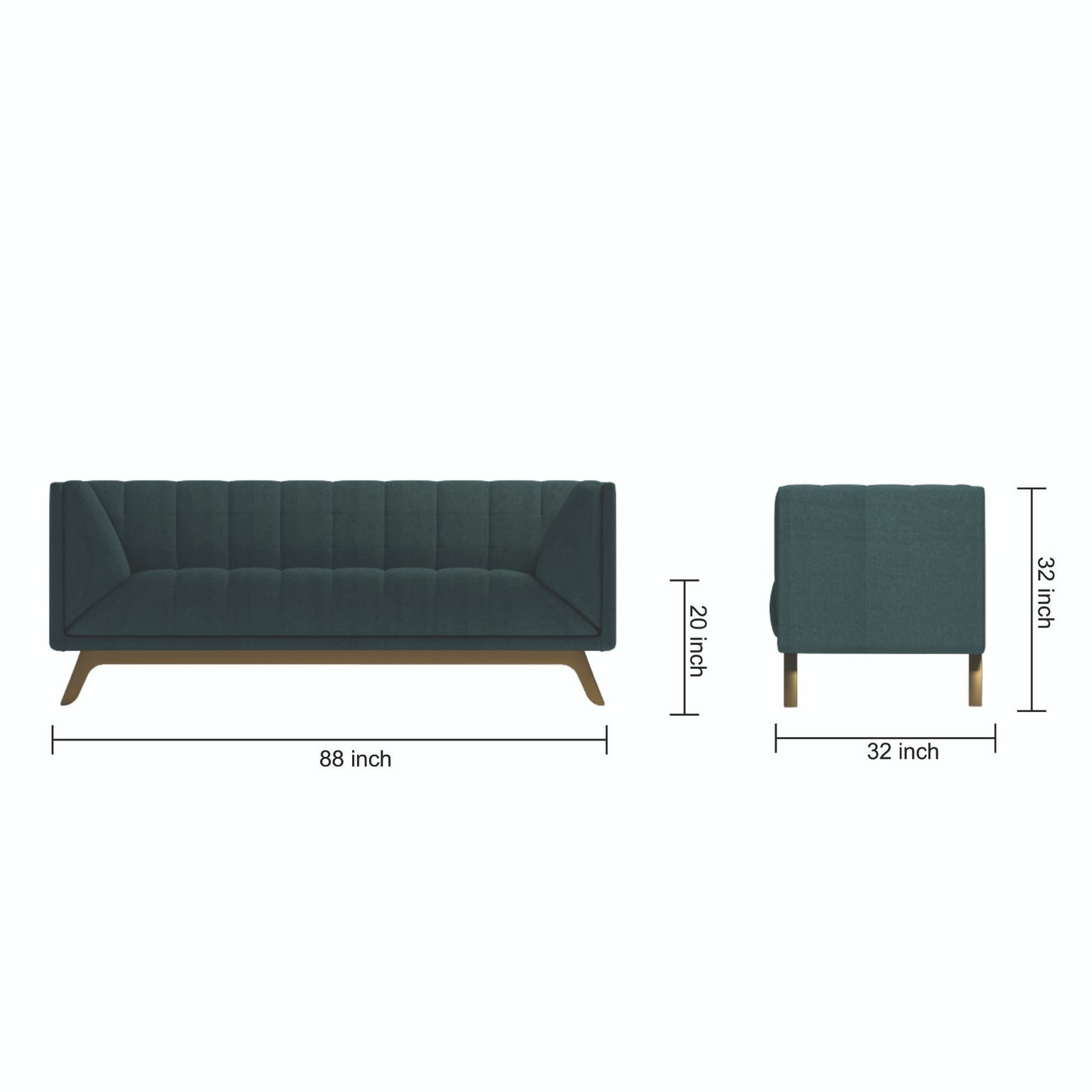 Built on a solid hardwood frame with high-resilience foam cushioning, this sofa ensures long-lasting support and comfort. The polished brass-finished steel legs add a sophisticated gleam, completing the look with stability and strength.