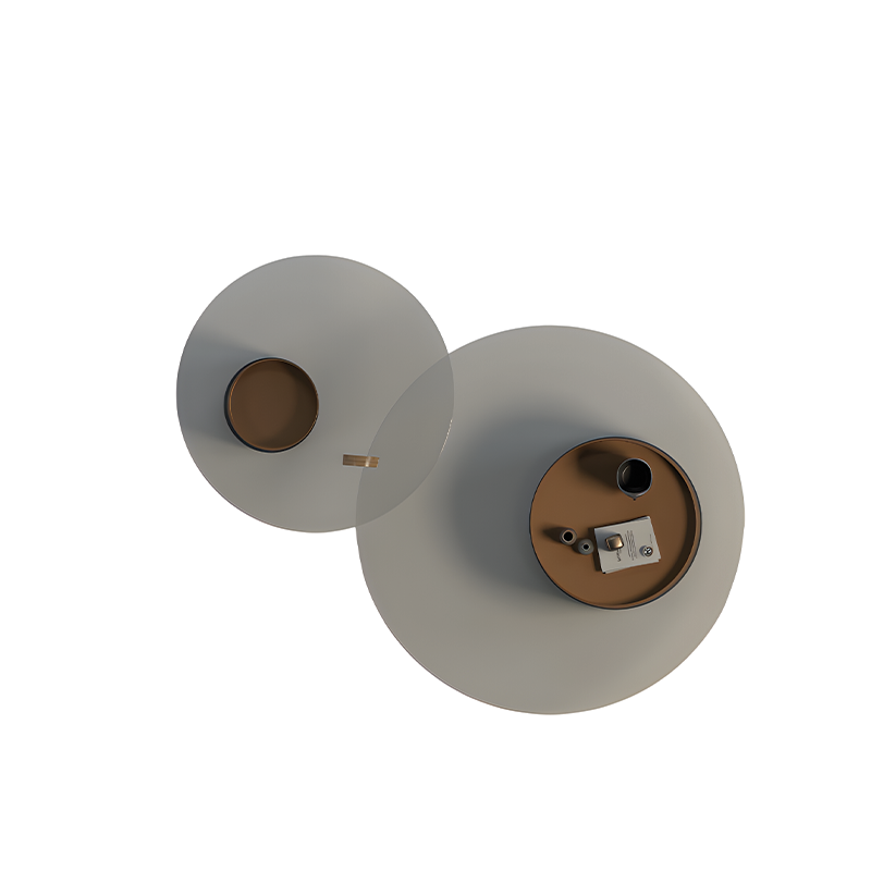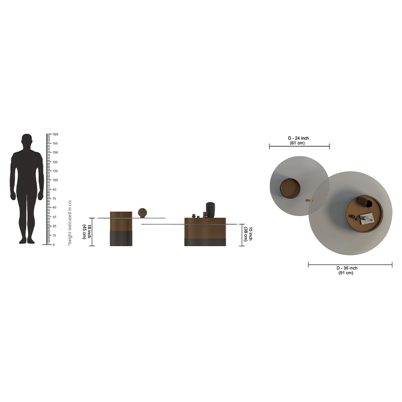 Base: Contrasting bronze and grey cylindrical supports for stability and style