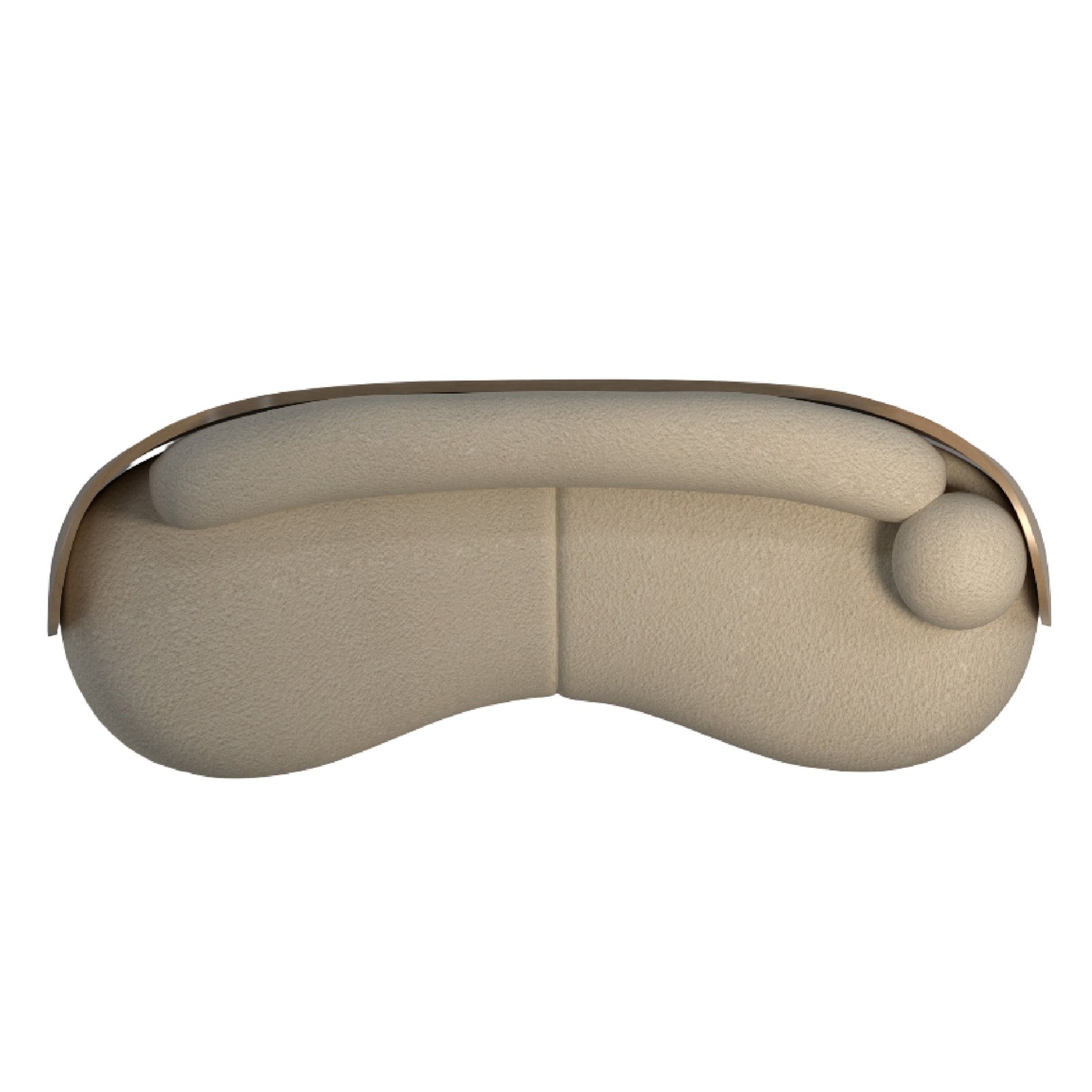 Bring sculptural elegance to your interiors with the Curved Cloud-Form Sofa. Upholstered in soft cream beige boucle with a natural oak finish base, it offers organic comfort with a modern Scandinavian touch.