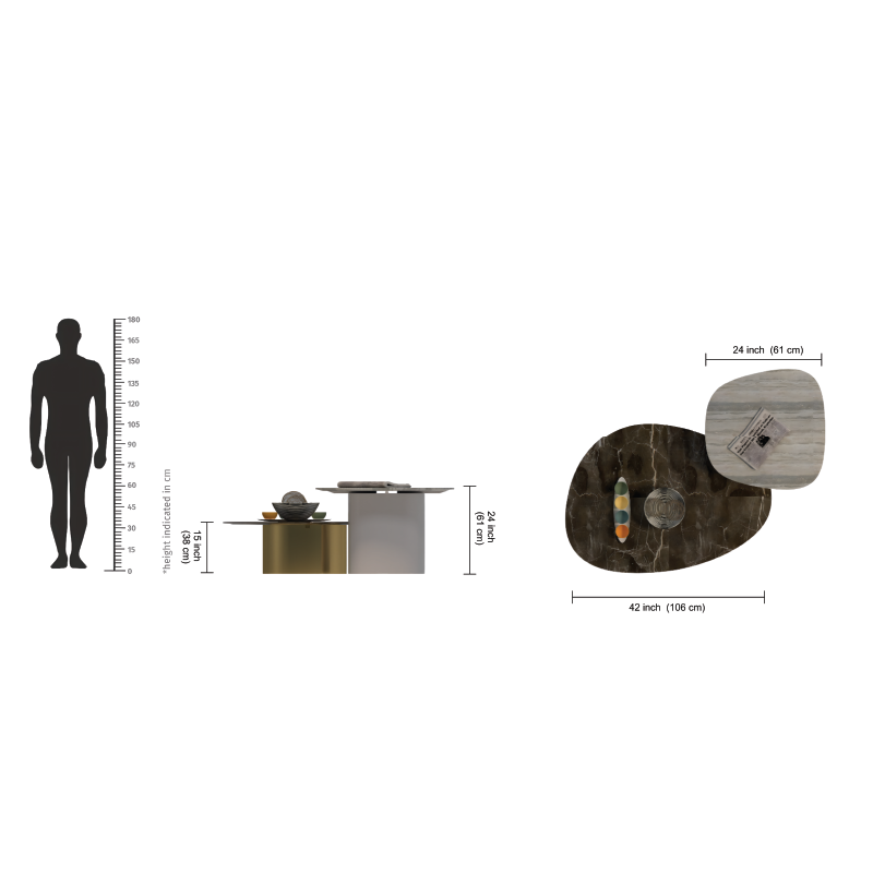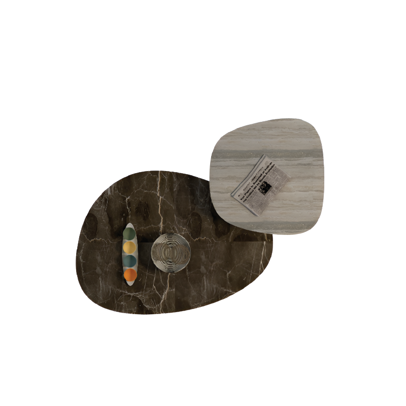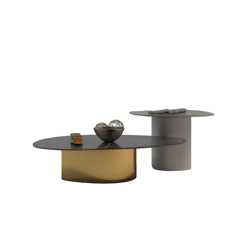 The Dual-Toned Modern Oval Coffee Tables pair striking materials and contrasting finishes to create a bold design statement. Each table features a glossy black marble top supported by solid cylindrical pedestals, one in brushed gold and the other in matte grey. Their interplay of sheen and matte textures adds dynamic balance and visual intrigue. Perfect for luxury lounges or modern homes, they can be styled together or individually. A blend of strength, elegance, and timeless appeal, designed to redefine your living space.