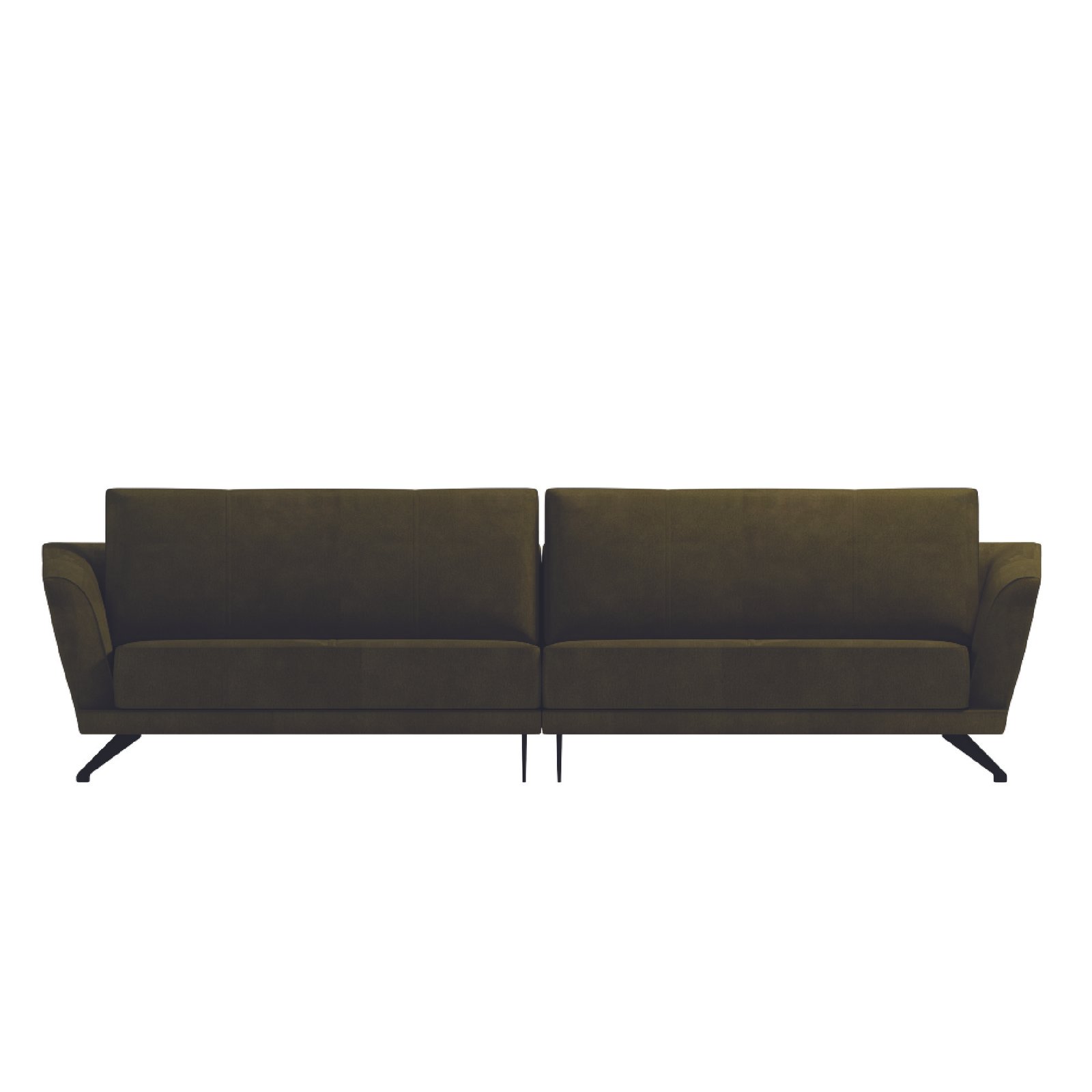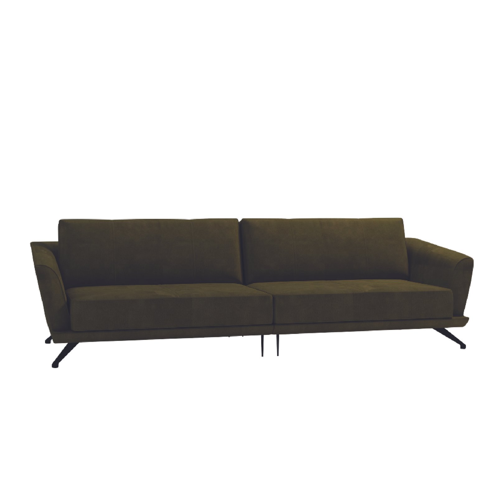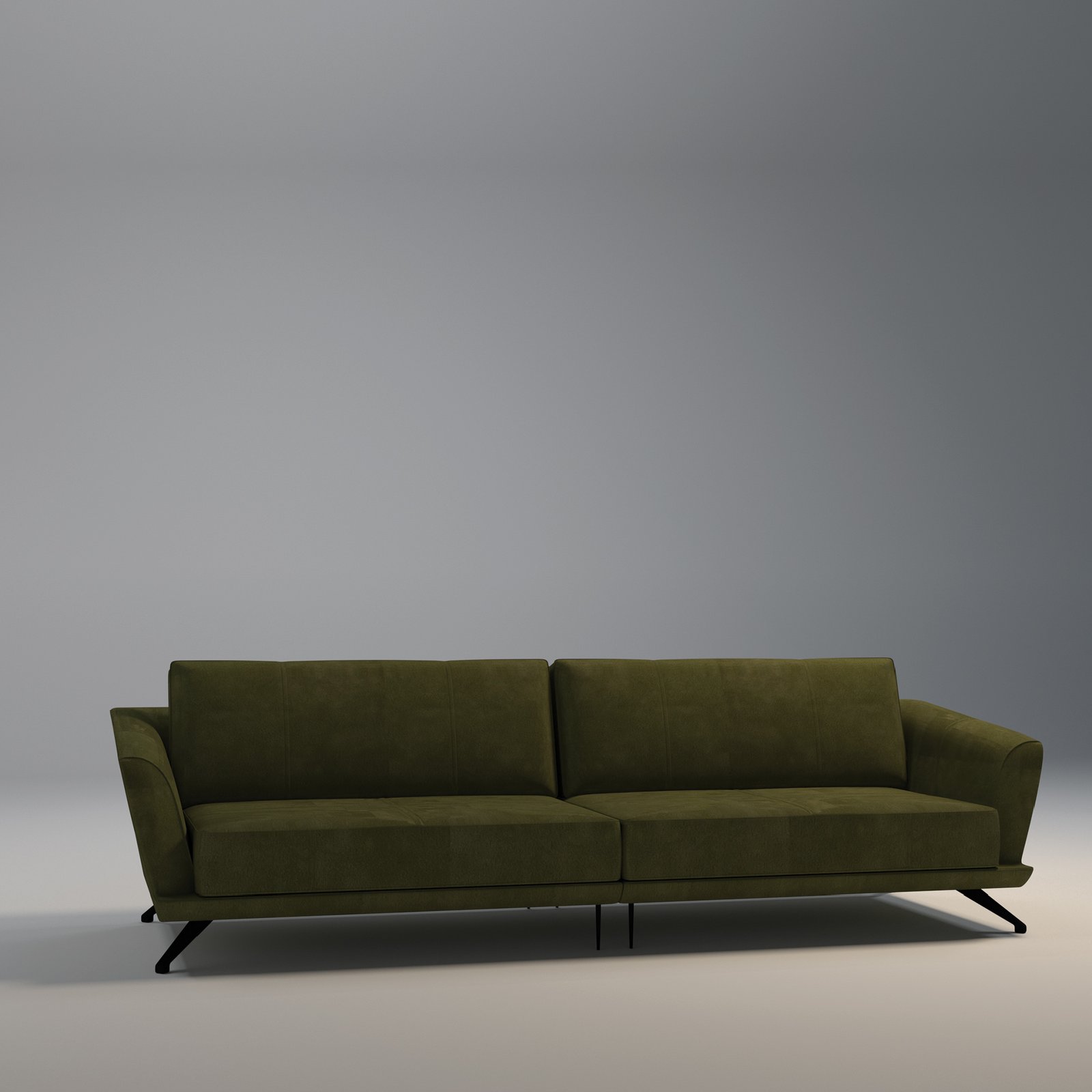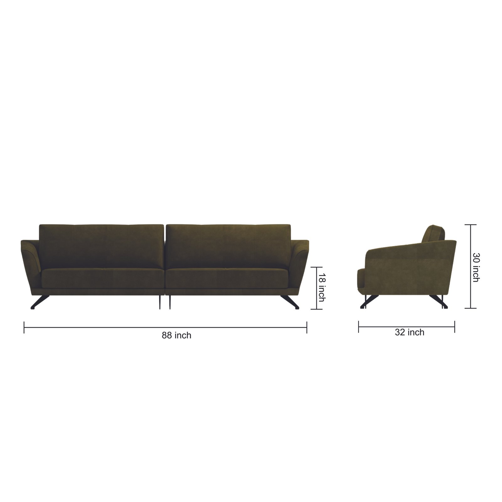 The Lenia Modernist Sofa in deep olive green pairs soft microfiber suede with sleek matte-black legs, delivering a perfect blend of mid-century modern and Scandinavian elegance — durable, easy to clean, and timelessly stylish.