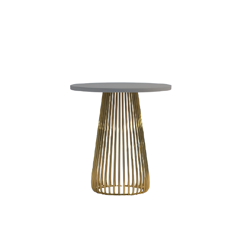 A minimalist yet luxurious round corner table featuring a glossy grey HDHMR top supported by matte golden metal rods. Ideal for bedrooms, living rooms, and premium lounge areas.