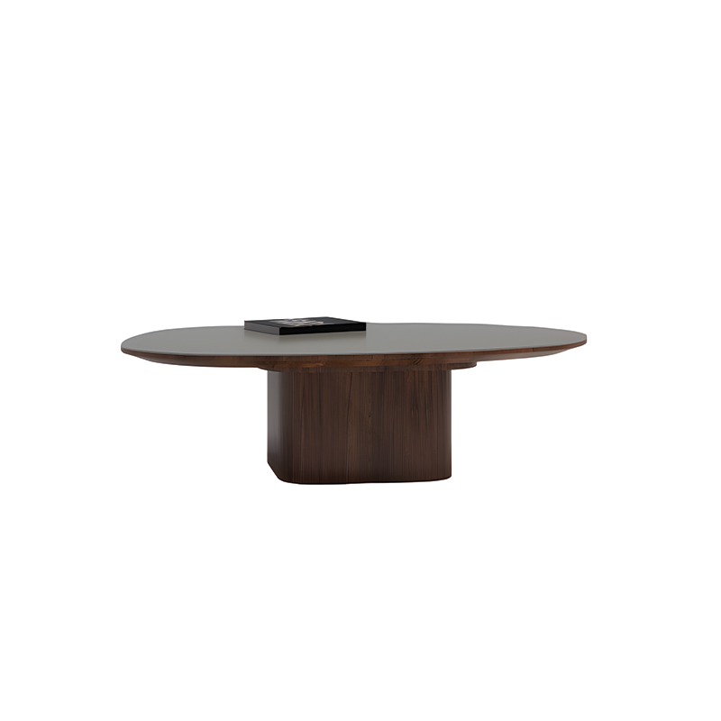 The Minimalist Oval Wooden Center Table brings natural warmth and organic shape into modern spaces. Its marble-finish top and walnut base merge seamlessly, forming a continuous sculptural form. The single pedestal design offers stability and a clean silhouette that complements minimalist décor. Perfect for lounges, boutique interiors, or elegant living rooms, it adds sophistication without excess. A balanced design that effortlessly unites modern artistry with everyday function.
