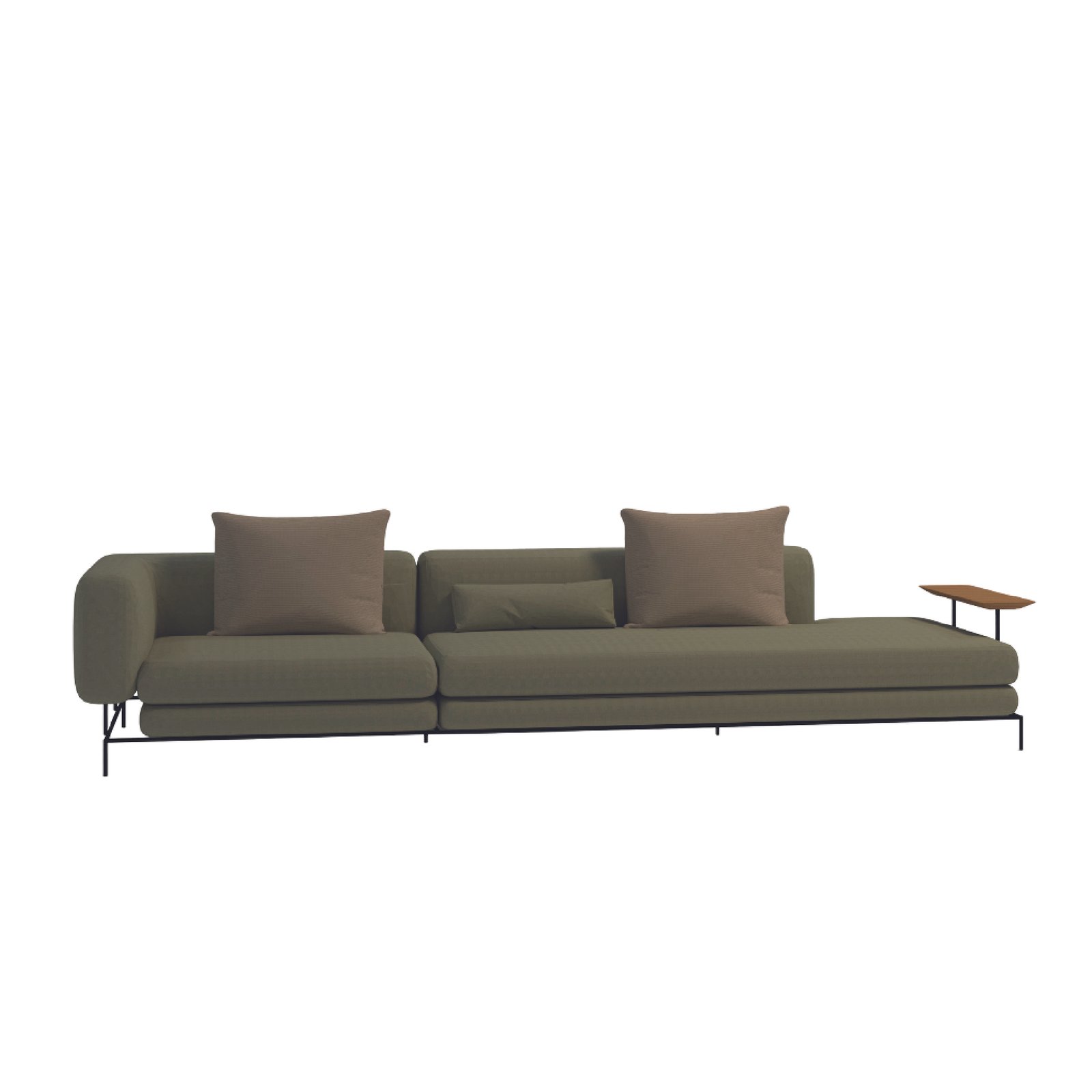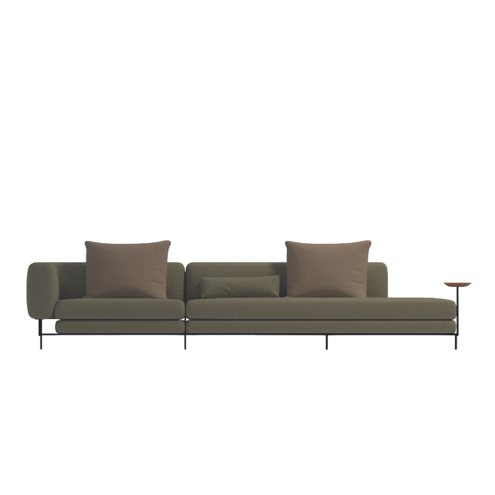 Bring home sleek versatility with the Modern Chaise-Style 3-Seater Sofa, finished in olive green with an integrated side table. Designed for modern minimalism and contemporary industrial spaces, it offers plush comfort with a refined, functional edge.