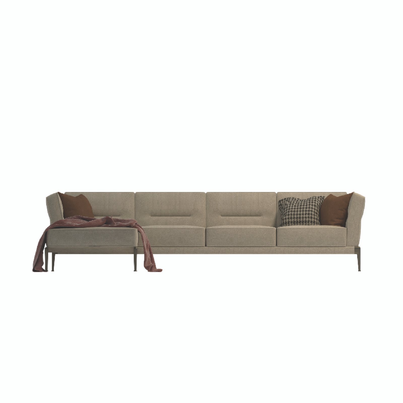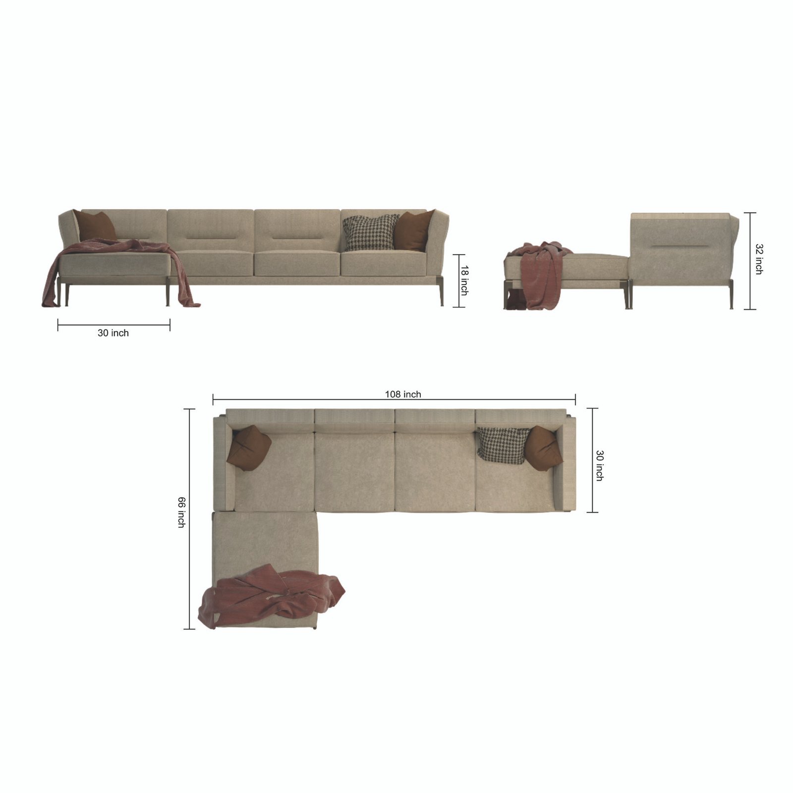 The Modern Sectional L-Sofa with Lounger is designed to combine style, comfort, and modular flexibility. Upholstered in high-quality warm beige woven fabric, it offers a soft, elegant look that blends seamlessly with modern interiors. Its solid hardwood frame, enhanced with a premium foam core and webbing support, ensures long-lasting durability and exceptional seating comfort. Slim matte black powder-coated legs add a minimalist touch while providing reliable stability, complemented by powder-coated steel construction for strength. The versatile modular design of this L-shaped sectional with lounger allows for easy adaptability in both spacious and compact layouts. Perfect for contemporary living rooms, open-plan lounges, or upscale reception areas, this sofa delivers modern minimal elegance with functionality and comfort at its core.