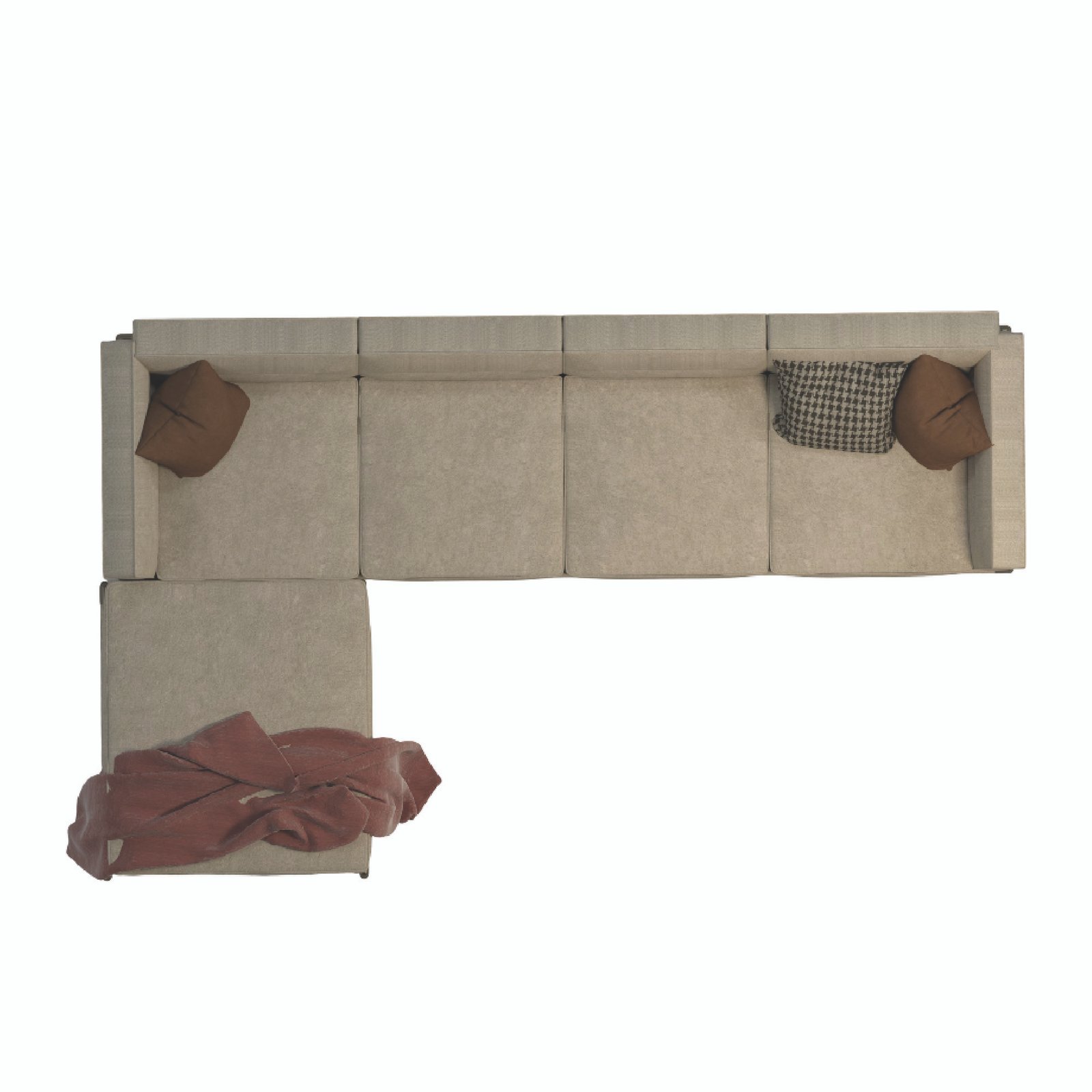Experience versatile comfort with the Modern Sectional L-Sofa with Lounger. Upholstered in warm beige woven fabric and supported by slim matte black legs, it brings modular flexibility and minimal elegance to contemporary spaces.
