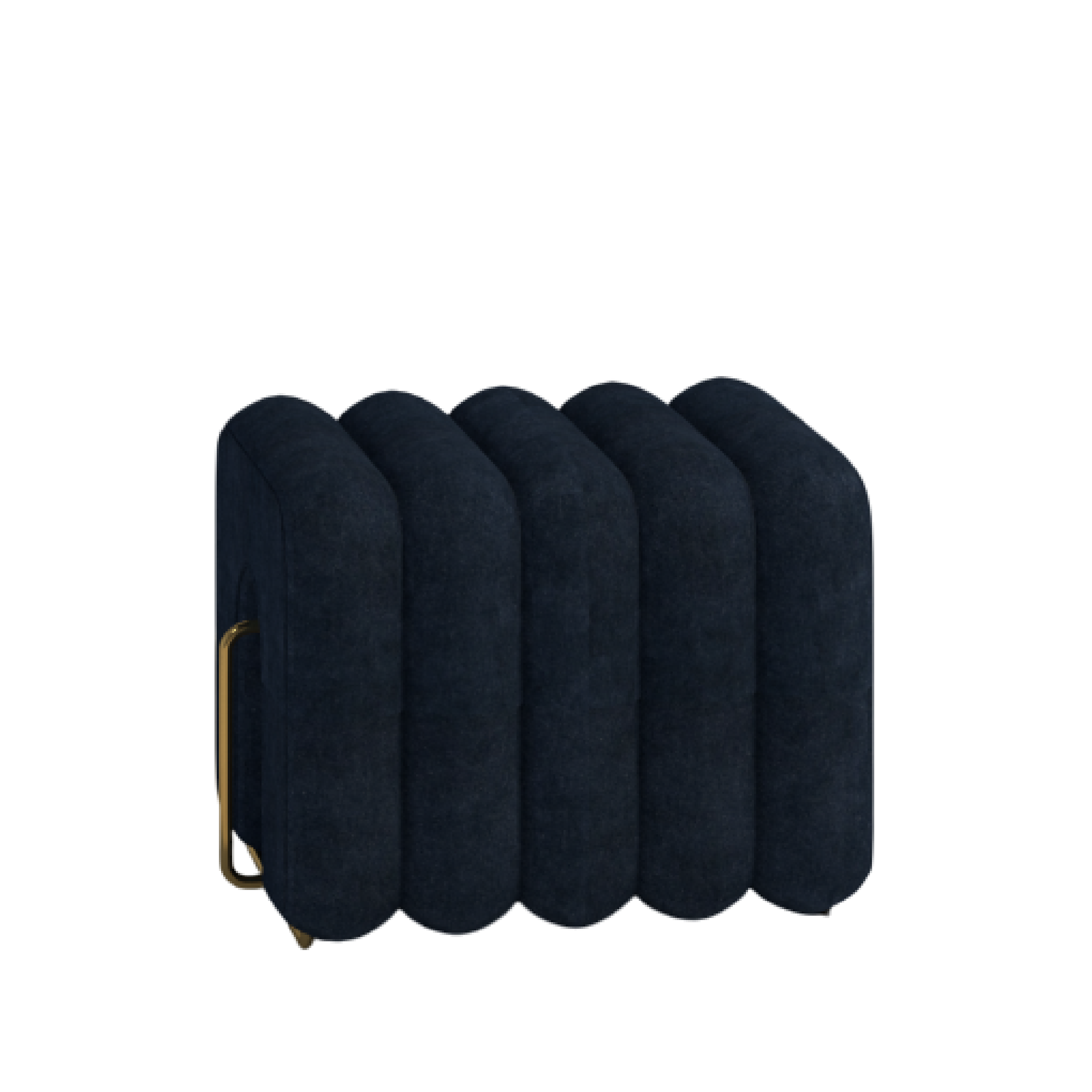 Our Nautical Channel Tufted Pouffe in Navy Blue is a statement piece that beautifully represents Modern Luxe and Art Deco Revival design styles. Its high-resilience foam seat, with structured vertical channel tufting, provides a sophisticated and comfortable seating experience. Soft-touch deep navy blue velvet fabric with a matte sheen enhances its luxury. Internal hardwood frame and brushed gold finish metallic accents make this ottoman sturdy and elegant. It is a perfect addition to the living room, bedroom, lounge, or walk-in closet, where it can be a glamorous focal point.