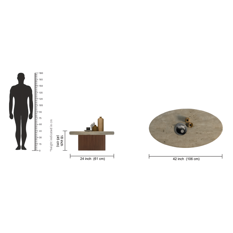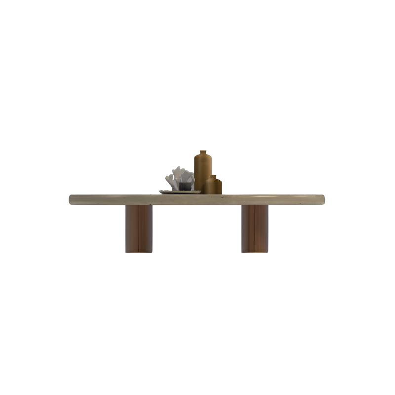 The Oval Stone-Top Contemporary Coffee Table celebrates the raw beauty of stone and the warmth of wood. Its smooth beige stone top, subtly veined, rests on twin walnut cylindrical legs for perfect balance and visual weight. The natural materials and clean form evoke a sense of calm sophistication. Ideal for modern lounges, living spaces, or boutique interiors, it blends earthy luxury with structural elegance. A table that quietly enhances any contemporary setting with timeless grace.