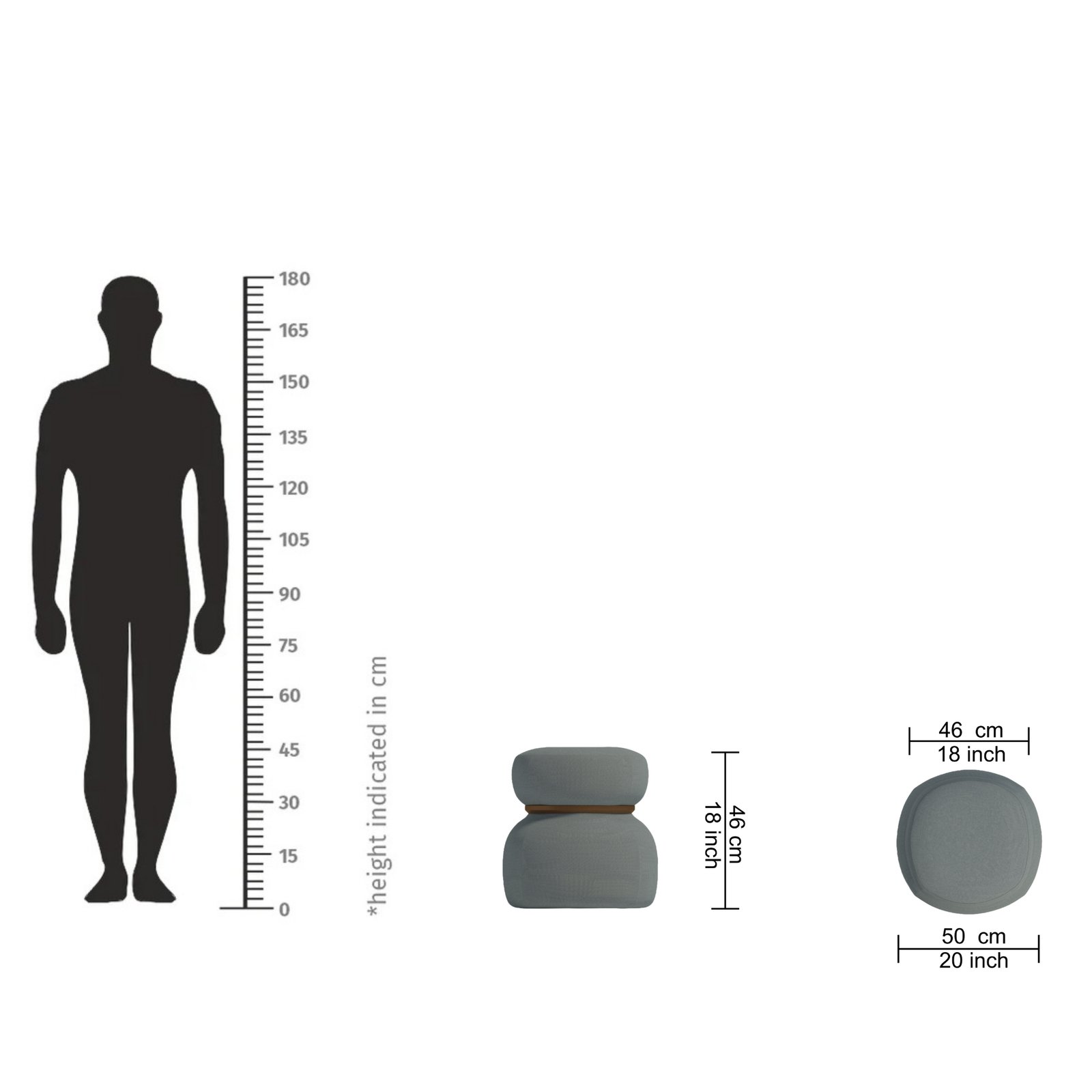 Our Powder Blue Sculptural Pouffe embraces Modern Minimal design. Its unique double-cushion cylindrical design with stacked, rounded forms creates an eye-catching look. Powder blue textured linen upholstery and a warm tan brown ring divider in the centre give this pouffe a fresh and sophisticated appeal. Internal support is made from engineered wood and high-density foam core which ensure durability and comfort. It’s a perfect choice for kids’ rooms, boutique settings, or creative living spaces where style and functionality are important.