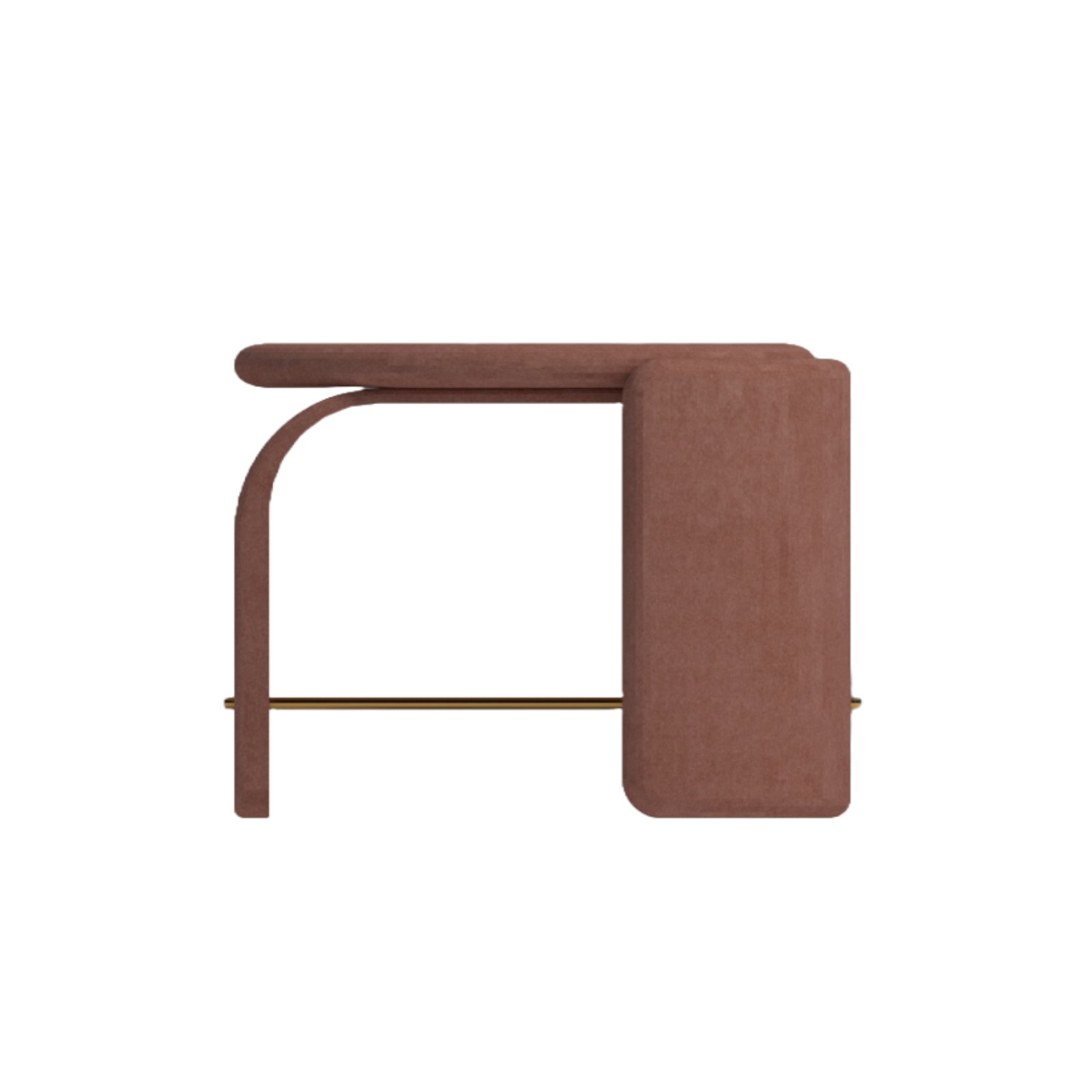 Give your home a glamorous touch with this Velvet Arch Poufee in Dusty Rose. Its unique sculptural design and metallic gold rod make it a stylish and functional showstopper.