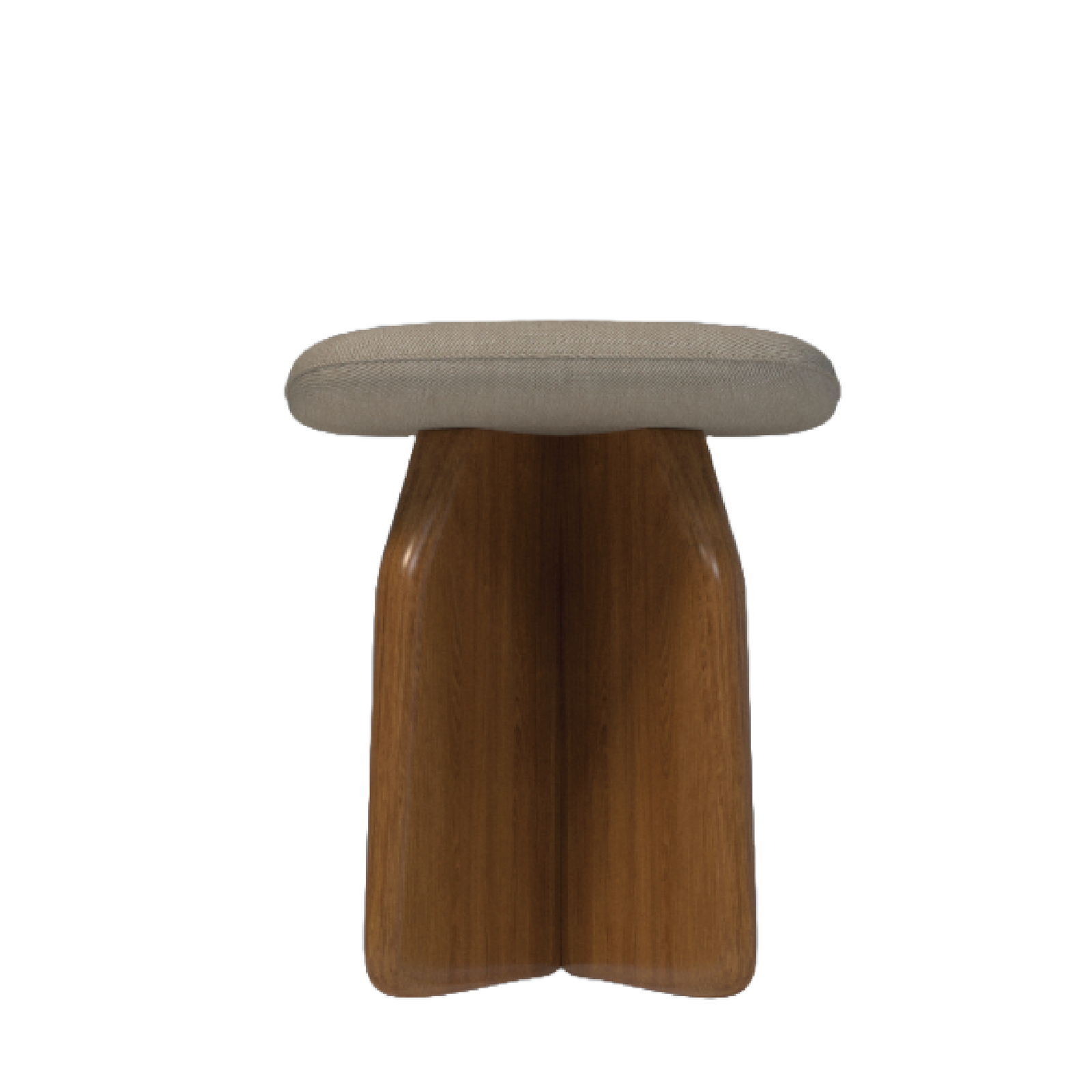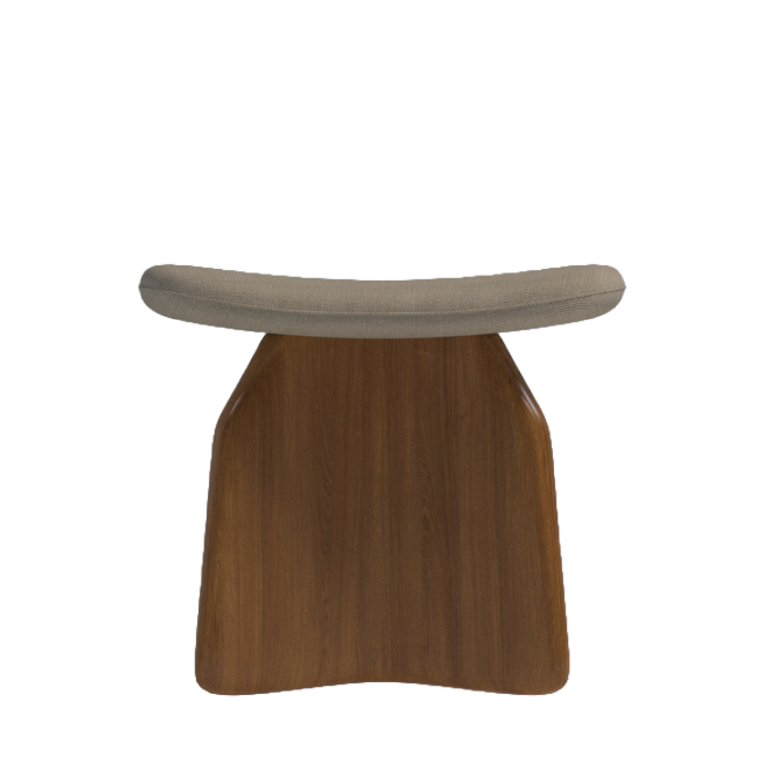 Base: Sculpted ergonomic wood base with curved edges, made from solid wood with natural walnut finish
